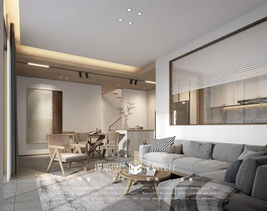 在客廳中,通過(guò)線(xiàn)性射燈來(lái)對(duì)藝術(shù)裝飾做重點(diǎn)照明,同時(shí)用筒燈和燈帶做基礎(chǔ)照明。在吊頂、墻壁中裝置隱藏式的燈帶,能夠共同保證空間必要的亮度需求,同時(shí)使空間整體更有層次感。