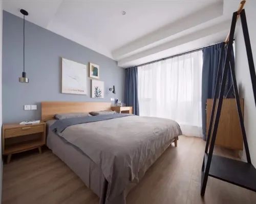 對于層高比較充足的臥室,可以臥室做上吊頂,然后暗裝上筒燈,讓空間照明更加均勻舒適,而且空間視覺感也會更加簡潔大方。