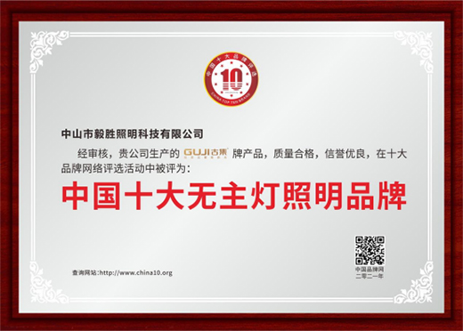 中國十大品牌名單揭曉,GUJI古集照明榮耀上榜