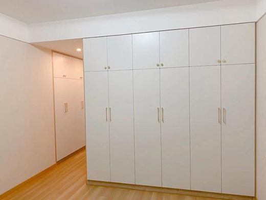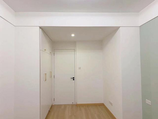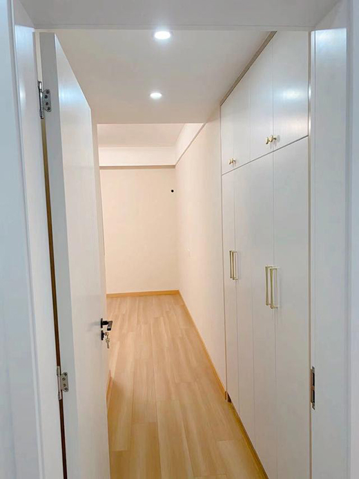 定制了一排的衣柜,可以提供非常充足的儲(chǔ)物空間,視覺(jué)上更大氣。頂面沒(méi)有選擇安裝吊頂,僅僅走了一圈石膏線條,看著也很有空間感。衣柜門(mén)沒(méi)有其他的造型,顯得比較簡(jiǎn)潔,耐看,不會(huì)給人壓抑感。選擇白色,特別干凈。