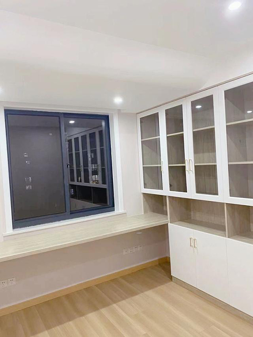 騰出一個(gè)空間作為書(shū)房,利用窗戶(hù)的位置設(shè)計(jì)了工作臺(tái),剛好把空間利用起來(lái)。右邊是書(shū)柜,可以方便收納,特別棒。定制的柜子,做工與質(zhì)量都不錯(cuò),細(xì)節(jié)處理也比較好。
