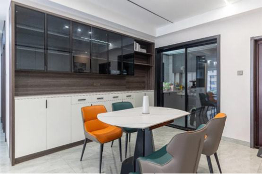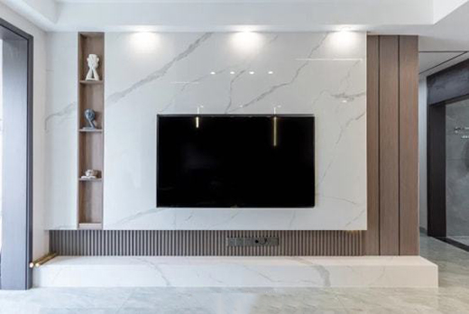 相比吸頂燈或吊燈的單一性,無主燈設計沒有一個特別搶眼的主燈,而是通過數個光源組合點亮空間,能夠營造出或溫馨、或個性化的居住氛圍??筛鶕煌墓δ苄枨髞碓O定不同的光源,如觀影氛圍、閱讀氛圍等,出現在預設的區(qū)域光源。