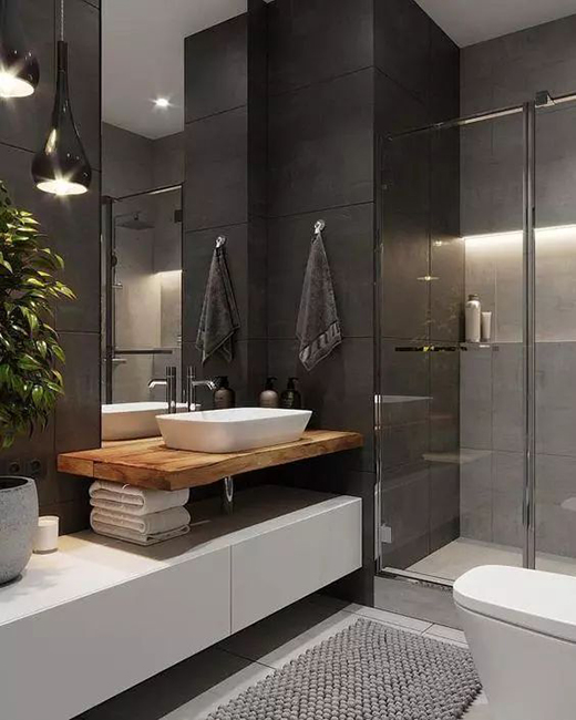 淋浴區(qū)的壁龕可安置燈帶,方便看清洗浴物品。