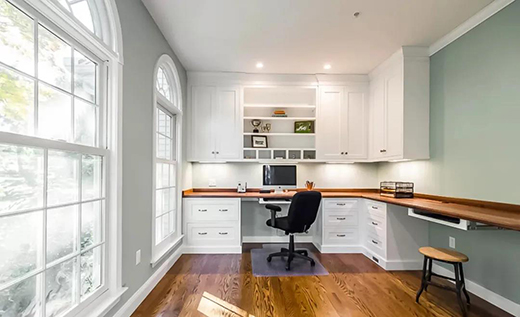 1.書房的位置最好設(shè)置有自然光源照射之處,書桌的位置最好靠近窗戶
