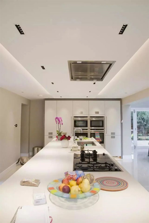 當(dāng)然,層高越高,空間越開闊舒朗,很多家庭實在不愿意犧牲層高,所以選擇一種折中方式:局部吊頂。局部吊頂作用多多:隱藏?zé)魩?,做窗簾盒,安裝嵌入式筒燈,空調(diào)出風(fēng)口,隱藏變壓器、電線和檢修口等。缺點是看起來沒有那么簡潔。