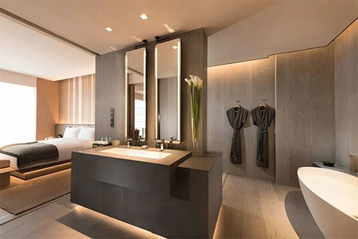 傳統(tǒng)照明形式,主要是一盞燈起到全局照明的作用。而無主等的設計摒棄了單一的大吊燈形式,用燈帶、筒燈、射燈、落地燈等燈具替代。多種光源的組合搭配,可以達到視覺上的延伸,豐富空間的層次感。