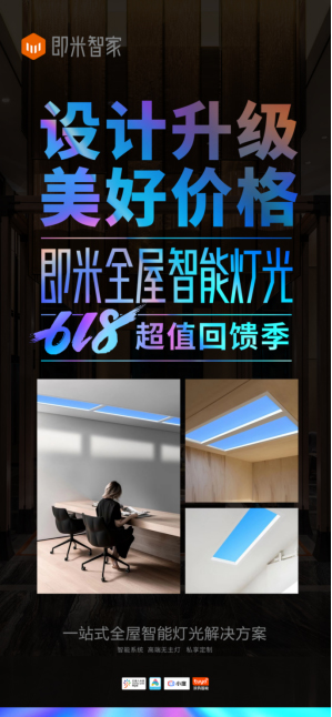 據(jù)了解,在今年618活動中,即米除了對“天空燈”產(chǎn)品進(jìn)行迭代,也進(jìn)行全景燈光設(shè)計大升級,推出全案燈光服務(wù)。通過總部燈光設(shè)計中心和區(qū)域服務(wù)商有效結(jié)合,強調(diào)與客戶的深入互動,注重客戶對設(shè)計方案的參與感,根據(jù)客戶的需求提供個性化的燈光設(shè)計服務(wù),有效解決“懂設(shè)計懂產(chǎn)品更懂用戶”的行業(yè)難題,以“咨詢+設(shè)計+產(chǎn)品供應(yīng)+安裝調(diào)試”打造出讓客戶滿意的一站式全屋智能燈光解決方案。