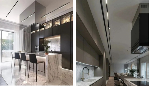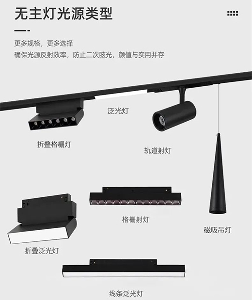 嵌入式軌道。嵌入式軌道是暗裝在吊頂內(nèi)的軌道,這樣的軌道安裝必須要有吊頂?shù)呐浜?,這里需要注意一下軌道的寬度,一般有40MM和25MM兩個尺寸,40MM多用于公裝設(shè)計,家用建議選擇25MM。明裝軌道。明裝軌道是使用卡扣固定在原頂面的軌道,無需吊頂,原頂面即可實現(xiàn)磁吸燈的安裝。吊線磁吸燈軌道。吊線磁吸軌道多用于公裝的辦公空間設(shè)計,空間高度過高時使用的一種軌道安裝方法。