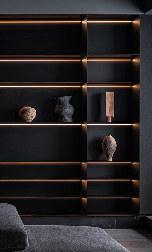 本次項(xiàng)目照明手法:重點(diǎn)照明、間接照明、低位照明。在產(chǎn)品上多選用拿鐵預(yù)埋款和線性照明,既不破壞裝修風(fēng)格的統(tǒng)一,又能完美呈現(xiàn)燈光效果。