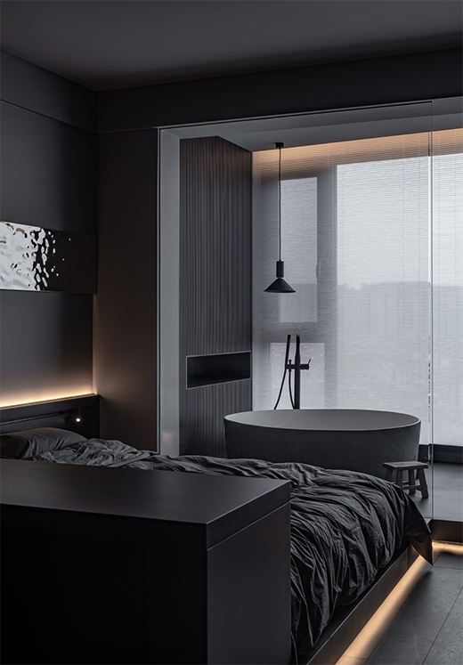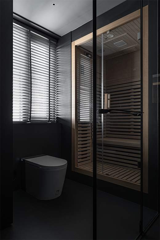 洗浴空間沿用了神秘又最具包容性的黑色,在這里我們與自己赤誠(chéng)相見(jiàn),沒(méi)有隱藏,沒(méi)有局限。