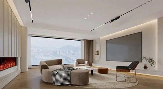 在傳統(tǒng)的客廳設(shè)計(jì)中,燈具一般是采用大體積的吊燈或吸頂燈,這樣的燈具安裝方式布線比較簡(jiǎn)單,但是照明集中而不均勻,讓空間邊角顯得昏暗,而中間區(qū)域又過于明亮,因此出現(xiàn)了筒燈、射燈、軌道燈等這樣分布式的無主燈照明設(shè)計(jì),讓空間照明跟家均勻舒適,在照明范圍和亮度中創(chuàng)造出豐富的光影層次效果,今天就帶大家了解無主燈設(shè)計(jì)。