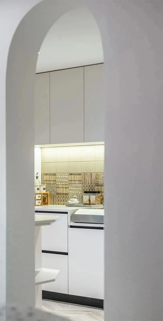 具體說,可以在操作臺(tái)、櫥柜的適當(dāng)位置安裝燈帶,餐桌上方選用顏值較高的小吊燈或者均勻布置的射燈、筒燈,用柔和的光線,營(yíng)造出貼合用餐情緒的燈光氛圍。