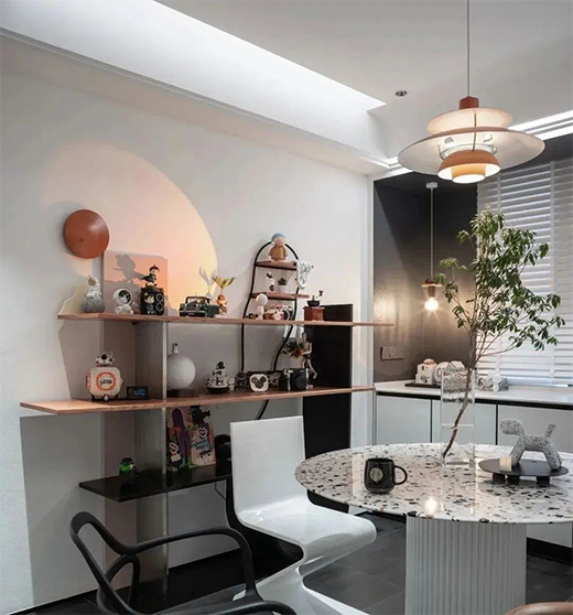 大主燈的清潔問題我們已經(jīng)談?wù)撨^很多次了,尤其是像水晶燈之類的大型燈具,清潔是非常麻煩的,而且非常容易積灰,但是在無主燈設(shè)計(jì)的家中,主要運(yùn)用的是筒燈、射燈……,這些就比較好打理啦。