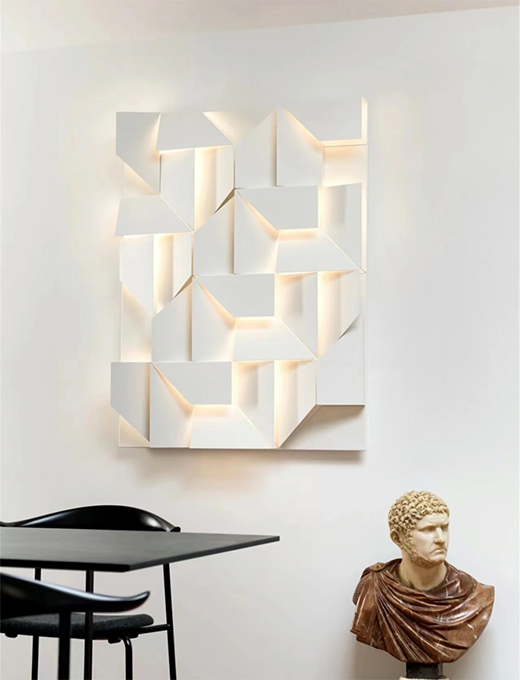 ▲NEMO家的這款壁燈,太像一件雕塑藝術(shù)品,兼具照明的美感和搭配的藝術(shù)性,棱角分明的切割線條透過白色光線,給人折紙的錯覺。