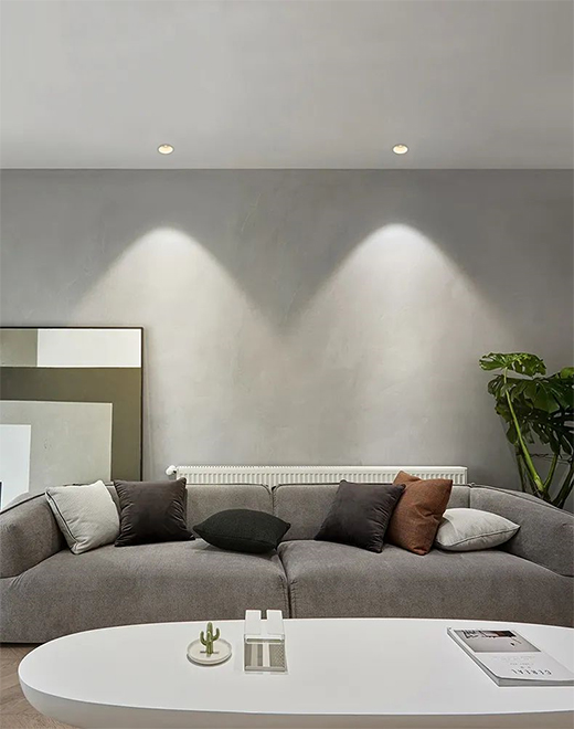 洗墻:就是利用燈具通過(guò)一定的角度,讓光線像瀑布般流淌在墻面上,可以起到全屋整體提亮的效果。想象一下,陽(yáng)光在家中每一面墻上停留時(shí)的感覺,是不是溫暖又明媚呢?