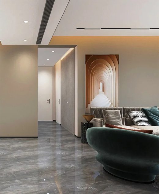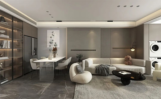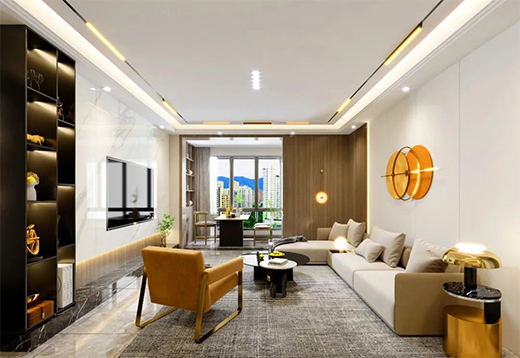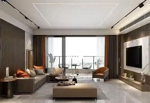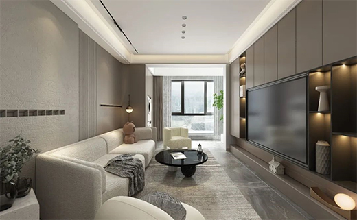 客廳采取無(wú)主燈設(shè)計(jì),可營(yíng)造出不同光照氛圍,滿(mǎn)足不同生活場(chǎng)景需要。