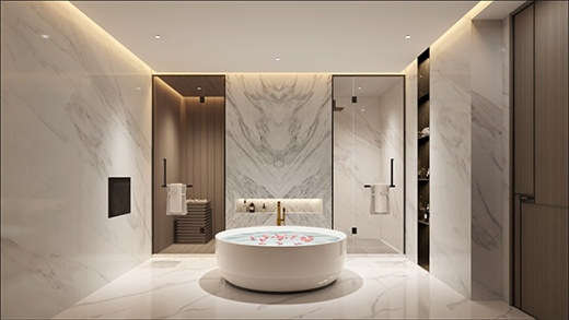 衛(wèi)浴間的照明,做到自然、柔和、光亮。