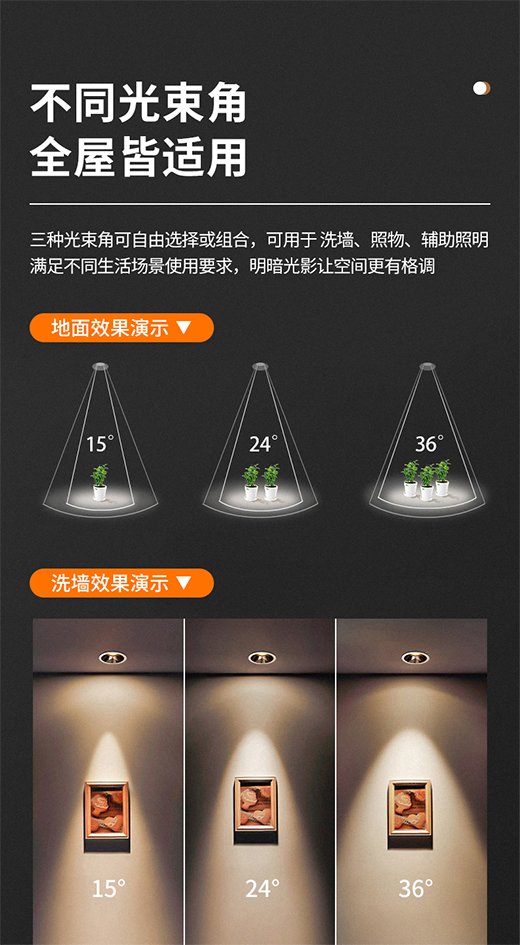 專業(yè)光學(xué)透鏡設(shè)計(jì)更可有效減少眩光,使發(fā)光面邊緣無(wú)光斑,無(wú)頻閃更健康。多種燈體照明角度,滿足無(wú)主燈和全景光的照明布置方案,輔助空間打造時(shí)尚個(gè)性的光環(huán)境。