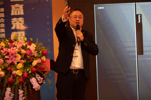 津晶企業(yè)集團江國民董事長上臺,代表集團向現場嘉賓表示熱烈的歡迎及誠摯感謝。隨后,江董事長圍繞“四緯一體·互聯互通商業(yè)模式,打通供應鏈最后一道壁壘!”為引題發(fā)表重要講話,為本場會議確立下正確的目標方向及思想基調,并祝愿在座嘉賓都能透過本次會議學有所獲、不虛此行。