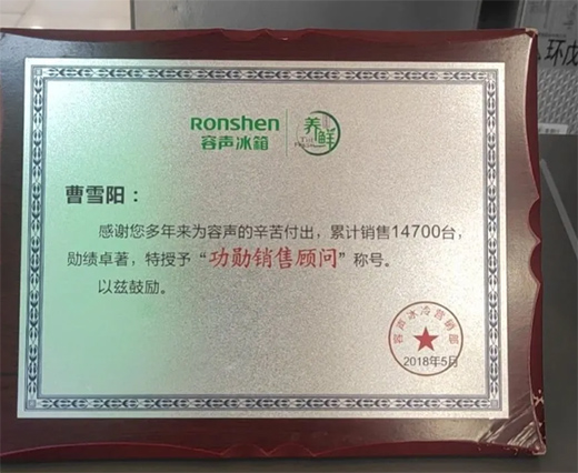 在容聲工作的這16年里,曹雪陽(yáng)靠著自己的勤奮和智慧在導(dǎo)購(gòu)工作中走出了屬于自己精彩的一路。曹雪陽(yáng)說(shuō),未來(lái)她將在這條路上不忘初心,繼續(xù)前行,為了自己,也為了對(duì)容聲品牌的堅(jiān)守。