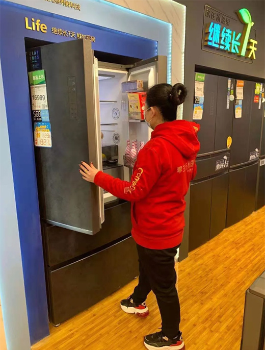 當(dāng)問(wèn)到曹雪陽(yáng)容聲冰箱中什么機(jī)型最受大眾喜愛(ài)時(shí),曹雪陽(yáng)說(shuō):“當(dāng)然是我們WILL冰鮮箱系列,這款機(jī)型無(wú)論是技術(shù)還是顏值都是市面上難得的一款產(chǎn)品,來(lái)到店里的顧客但凡聽(tīng)了介紹,看過(guò)冰箱里的內(nèi)部生長(zhǎng)實(shí)驗(yàn),沒(méi)有一個(gè)不為之動(dòng)容的?!彼赃@款機(jī)型也成了曹雪陽(yáng)店里的王炸機(jī)型,同時(shí)曹雪陽(yáng)也給我們分享了在銷(xiāo)售WILL冰鮮箱高端機(jī)上的一些小竅門(mén)。