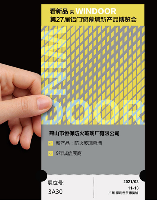 三月的美如豐茂綠蔭、靜謐水影,在這個(gè)充滿希望和生機(jī)的月份,第27屆鋁門(mén)窗幕墻新產(chǎn)品博覽會(huì)于2021年3月11日至13日再次拉開(kāi)序幕。作為“中國(guó)十大防火玻璃門(mén)窗品牌”的恒保企業(yè)有幸參與本次博覽會(huì),屆時(shí)將誠(chéng)邀您的蒞臨!