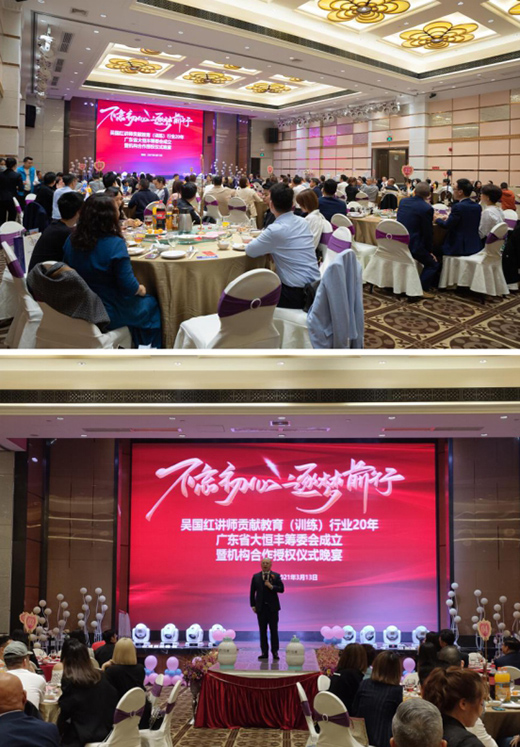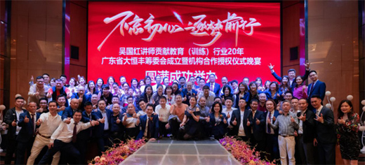 3月13日晚上,主辦方深圳大健康產(chǎn)業(yè)有限公司聯(lián)合協(xié)辦方恒保企業(yè)在廣州市海珠區(qū)稻香酒家(盈熙店)隆重舉辦了一場晚宴。本次晚宴以“不忘初心,逐夢前行”為主題,慶祝吳國紅講師貢獻教育(訓練)行業(yè)20年、廣東省大恒豐籌委會成立以及雷鋒雜志社東莞站對吳國紅講師和大恒豐(籌)戰(zhàn)略合作授牌儀式。