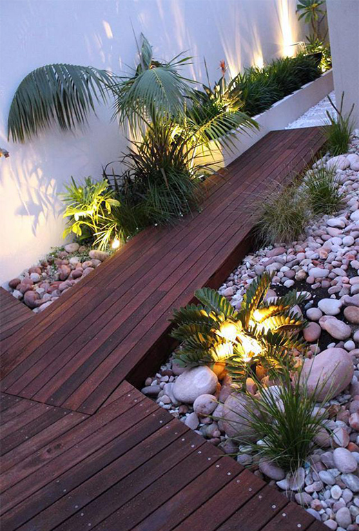住宅工程的照明設(shè)計(jì)對(duì)眩光的要求會(huì)更嚴(yán)格,避免使用太亮的光源,能夠隱藏或隱藏的戶外燈具,如將LED燈帶隱藏在木地板的臺(tái)階下或座椅下,不僅光源效果理想,還能產(chǎn)生夢(mèng)幻氣氛。墻燈、吊燈等也要配上燈罩,使光線減弱。