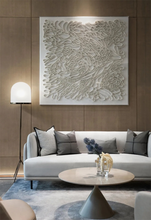 沙發(fā)墻作為靠放沙發(fā)的墻,采用木質的不僅耐磨,而且木質感自然舒適的質感,坐靠上去的效果也是非常的溫馨暖心。
