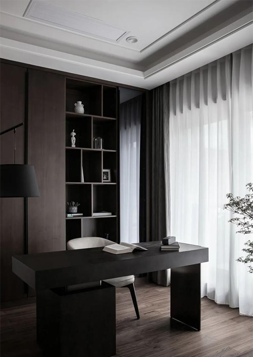我們希望以咖色溫潤的木質(zhì),作為主要的色彩基調(diào),內(nèi)斂的色澤傳達(dá)家的溫暖,遠(yuǎn)離城市的喧囂。