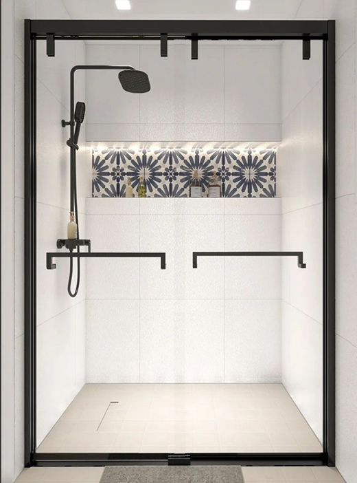 極簡(jiǎn)超窄啞黑邊框,減少了淋浴房的厚重感,顏值與安全并存。
