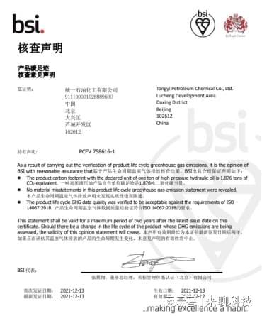 BSI是全球首個國家級標準化認證權威機構,是ISO 14067標準認證編寫工作的主要參與者,在碳排放領域有著豐富的經驗。統(tǒng)一石化的“碳索者”潤滑產品能夠獲得如此權威、嚴格的認證,也再次證明了企業(yè)的發(fā)展實力,同時也證明了企業(yè)在未來的發(fā)展中將長期致力于社會環(huán)境保護和可持續(xù)發(fā)展的重大決心。
