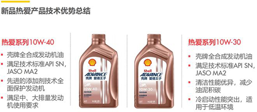 “熱愛”系列全合成機油提供兩款黏度等級:10W-40、10W-30,均滿足技術(shù)標準API SN、JASO MA2,擁有更高的性價比,適用于不同類型摩托車引擎,滿足道路通勤及踏板車使用需求。