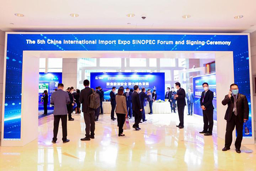 第五屆進(jìn)博會(huì)中國(guó)石化主題論壇暨中國(guó)石化交易分團(tuán)簽約儀式現(xiàn)場(chǎng)