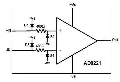 在輸入不受系統(tǒng)控制而是連接到外部世界的許多應(yīng)用中,例如測試設(shè)備、儀器儀表和一些傳感設(shè)備,輸入電壓可能會超過前端放大器的最大額定電壓。在這些應(yīng)用中,必須實施保護方案以保持設(shè)計的生存范圍和穩(wěn)健性。