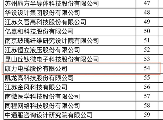 近日,“2021江蘇省百強創(chuàng)新型企業(yè)”榜單揭曉,位于汾湖的康力電梯股份有限公司榜上有名,位列54位。