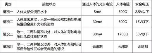 所以說(shuō),最可怕的不是電壓,而是電流。正是電流才是造成事故的罪魁禍?zhǔn)祝妷捍_實(shí)很無(wú)辜。我們常聽(tīng)說(shuō)安全電壓是36V,就被簡(jiǎn)單的認(rèn)為只要低于36V,就是安全的了,這種想法是錯(cuò)誤的。低于36V的時(shí)候,人也會(huì)發(fā)生觸電事故。這個(gè)所說(shuō)的36V是一般情況下,而且是在干燥的環(huán)境中。在干燥的環(huán)境中,人體的電阻在1000~2000Ω,在這種情況下,流過(guò)人體的電流很短短時(shí)間內(nèi)不會(huì)立刻造成人傷亡,但是要是長(zhǎng)期的接觸而沒(méi)有斷開(kāi),一直是在接觸著36V電壓,人遲早是要發(fā)生事故的。我們國(guó)家不僅規(guī)定了36V,其實(shí)還有比36V更小的電壓,規(guī)定中的最小的可以小到6V,這種事人長(zhǎng)時(shí)間的接觸情況下,也就是說(shuō)當(dāng)在6V以上時(shí)候并且長(zhǎng)時(shí)間接觸,人也是要出危險(xiǎn)的。以下有個(gè)表格,可以參考一下: