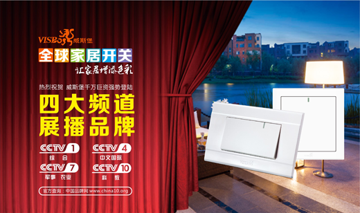 先人一步,未來已來。威斯堡電氣以極具前瞻性的目光,搶先登陸央視,為開啟未來的財富盛宴打下堅實的基礎(chǔ)。威斯堡電氣央視展播即將強勢來襲,敬請關(guān)注央視CCTV-1、CCTV-4、CCTV-7、CCTV-10四大頻道。