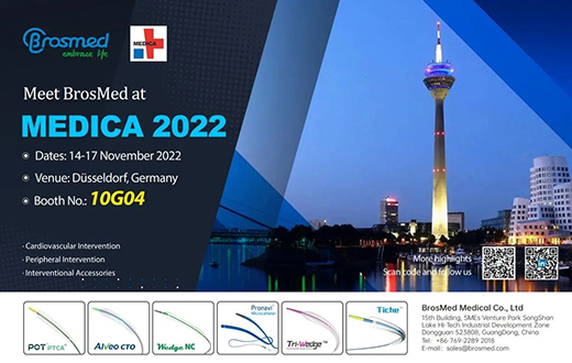 第54屆德國(guó)杜塞爾多夫國(guó)際醫(yī)院及醫(yī)療設(shè)備展覽會(huì)(MEDICA 2022)于2022年11月14日-17日在德國(guó)杜塞爾多夫隆重舉行。博邁醫(yī)療攜血管介入整體解決方案亮相MEDICA 10號(hào)館G04展位,全方位展示冠脈、外周、血管通路以及介入配件明星產(chǎn)品。