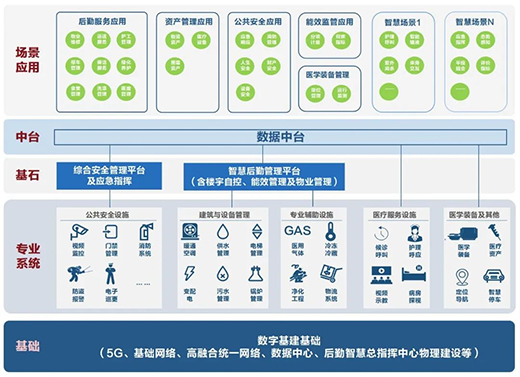 運(yùn)用Design Thinking頂層設(shè)計(jì)思維模式,美控與院方共同在管理系統(tǒng)邏輯結(jié)構(gòu)上,采用專業(yè)系統(tǒng)層、集成中臺(tái)層和應(yīng)用服務(wù)層三層架構(gòu)的設(shè)計(jì)。專業(yè)系統(tǒng)層是智慧醫(yī)院的信息化基礎(chǔ),系統(tǒng)集成中臺(tái)是整個(gè)智慧管理系統(tǒng)的支柱,應(yīng)用服務(wù)層是智慧化具體功能應(yīng)用的呈現(xiàn)。