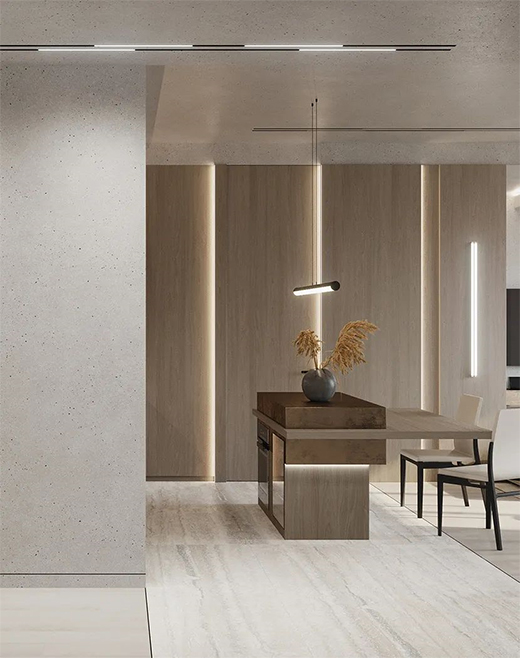在極簡的空間形態(tài)中,燈帶可以賦予其攝人心魄的層次美。