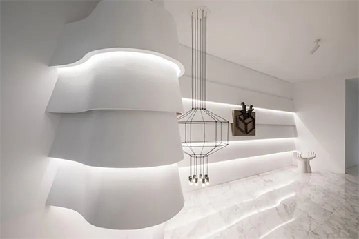 在空間設(shè)計(jì)中,很多設(shè)計(jì)師會(huì)引入“燈帶”的概念來點(diǎn)亮空間,既豐富了空間脈絡(luò),又營造了明暗層次與現(xiàn)實(shí)的對(duì)比視覺感。