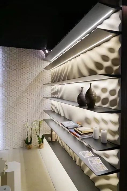 3)燈帶與層架的巧妙結(jié)合,充分渲染了精致時(shí)尚的室內(nèi)氛圍。