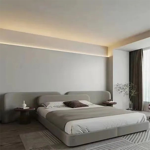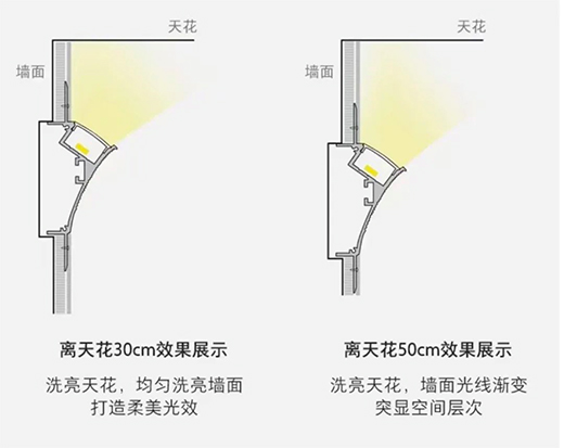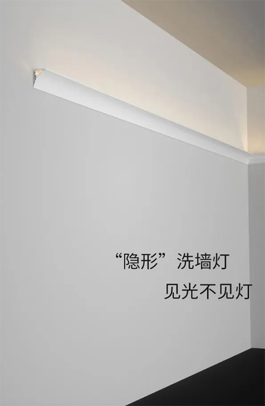 其次,這種洗墻燈帶在安裝方式上可以向上或向下發(fā)光,通過墻面的漫反射均勻發(fā)光。光線柔和,形成水一樣沖刷墻面的效果,均勻照亮立面墻面,可以完美替代傳統(tǒng)的回形燈槽吊頂。它有很多應(yīng)用場景: