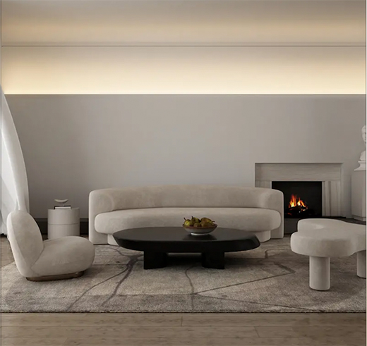 燈帶本身具有線條感,可以通過隱藏式設(shè)計(jì),沿著空間輪廓營造出獨(dú)特的造型,豐富空間光環(huán)境,同時(shí)增加空間立體感和層次感,營造氛圍。