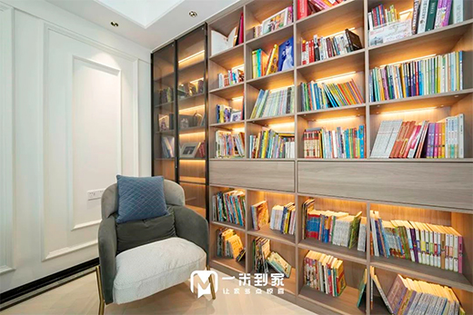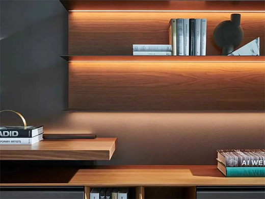 柜體燈帶也是十分常見的設計,在柜子的層架內側安置燈帶,可以為暗處增加輔助照明,弱化空間的封閉感。