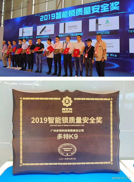多特智能鎖 榮獲2019智能鎖質(zhì)量安全獎