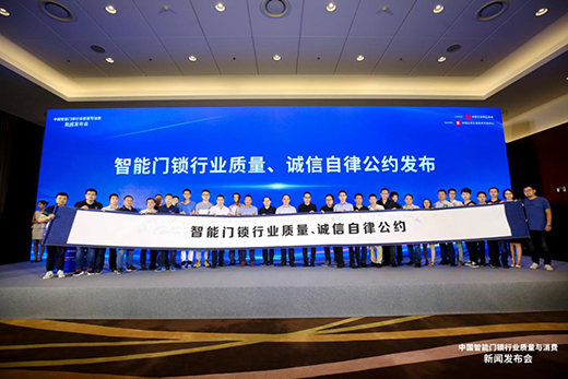 在現(xiàn)場(chǎng)120多位媒體人士和行業(yè)代表的見(jiàn)證下,40多家智能門鎖骨干企業(yè)共同簽署了《智能門鎖行業(yè)質(zhì)量、誠(chéng)信自律公約》。