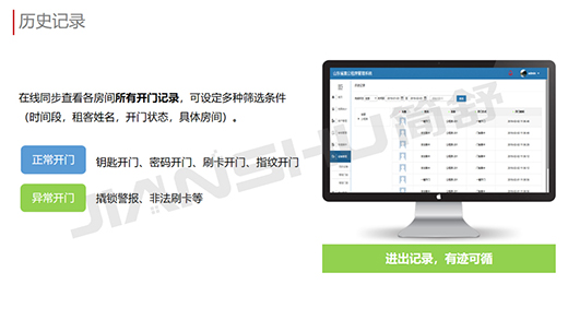 亮點(diǎn)15:歷史記錄,在線同步查看各房間所有開門記錄,可設(shè)定多種篩選條件,如時(shí)間段、租客姓名、開門狀態(tài)、具體房間等。