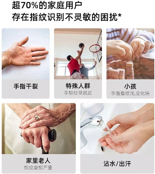 智能鎖從業(yè)者都清楚,目前市場占比最高的生物識別方式是指紋識別,另外,人臉識別也在快速發(fā)展中,相比而言,指靜脈占有率還不是很高。那么,為什么鹿客會重磅推出一款指靜脈智能鎖?這是因為,鹿客洞察到了主流指紋解鎖智能鎖無法覆蓋的用戶需求。